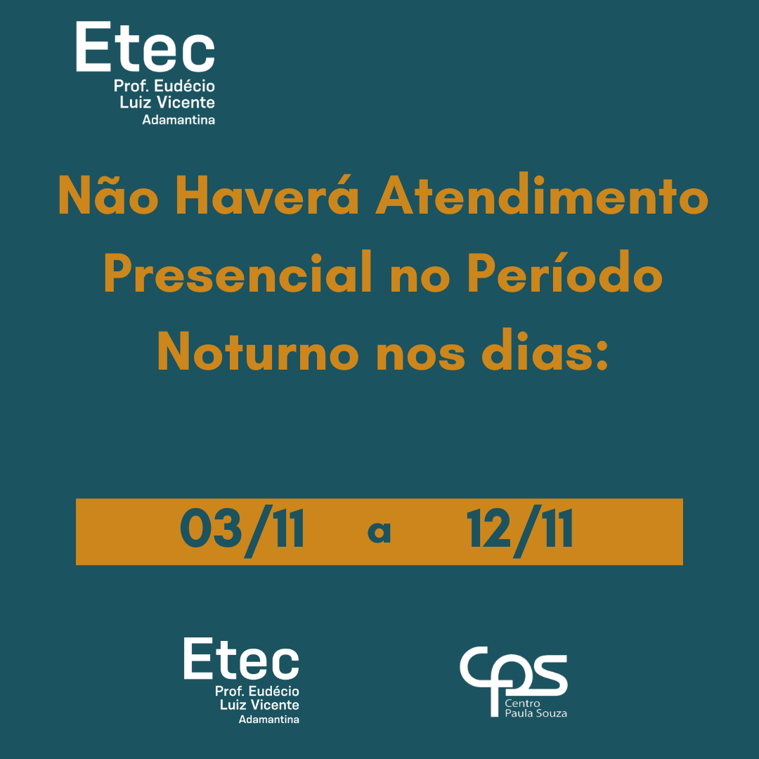 No período de 03 a 12/11/25 – não haverá atendimento noturno