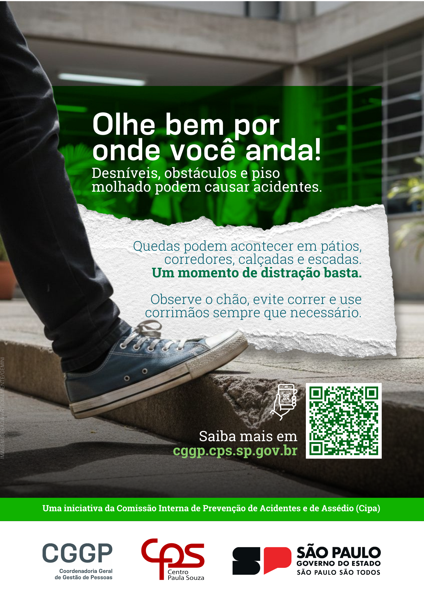 ✔️ Caminhe com atenção, evitando pisos irregulares.